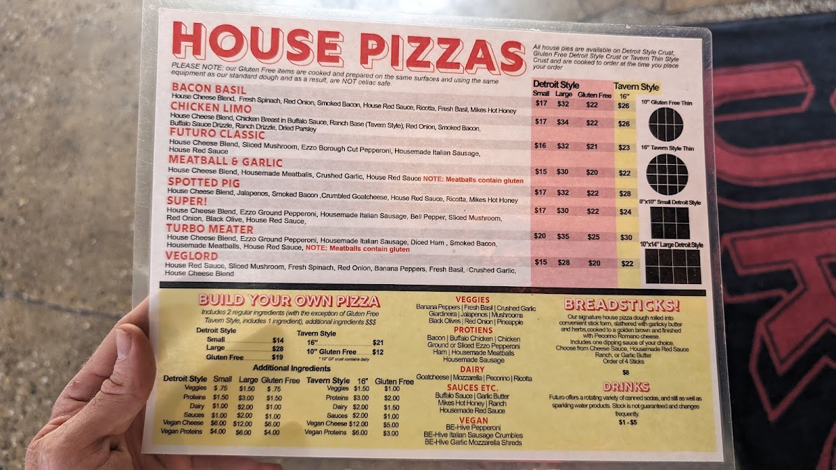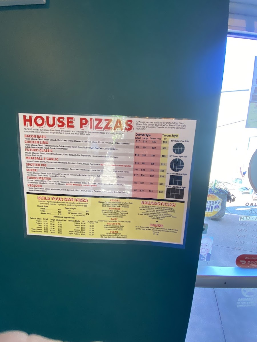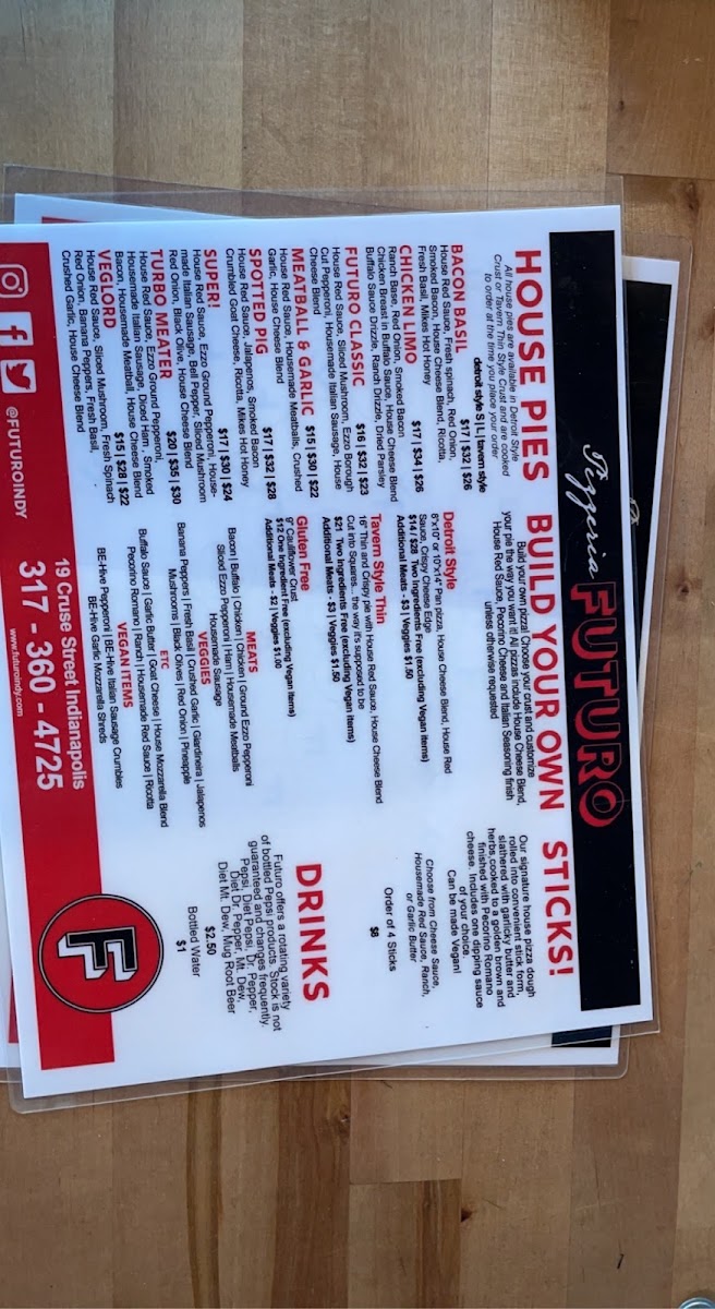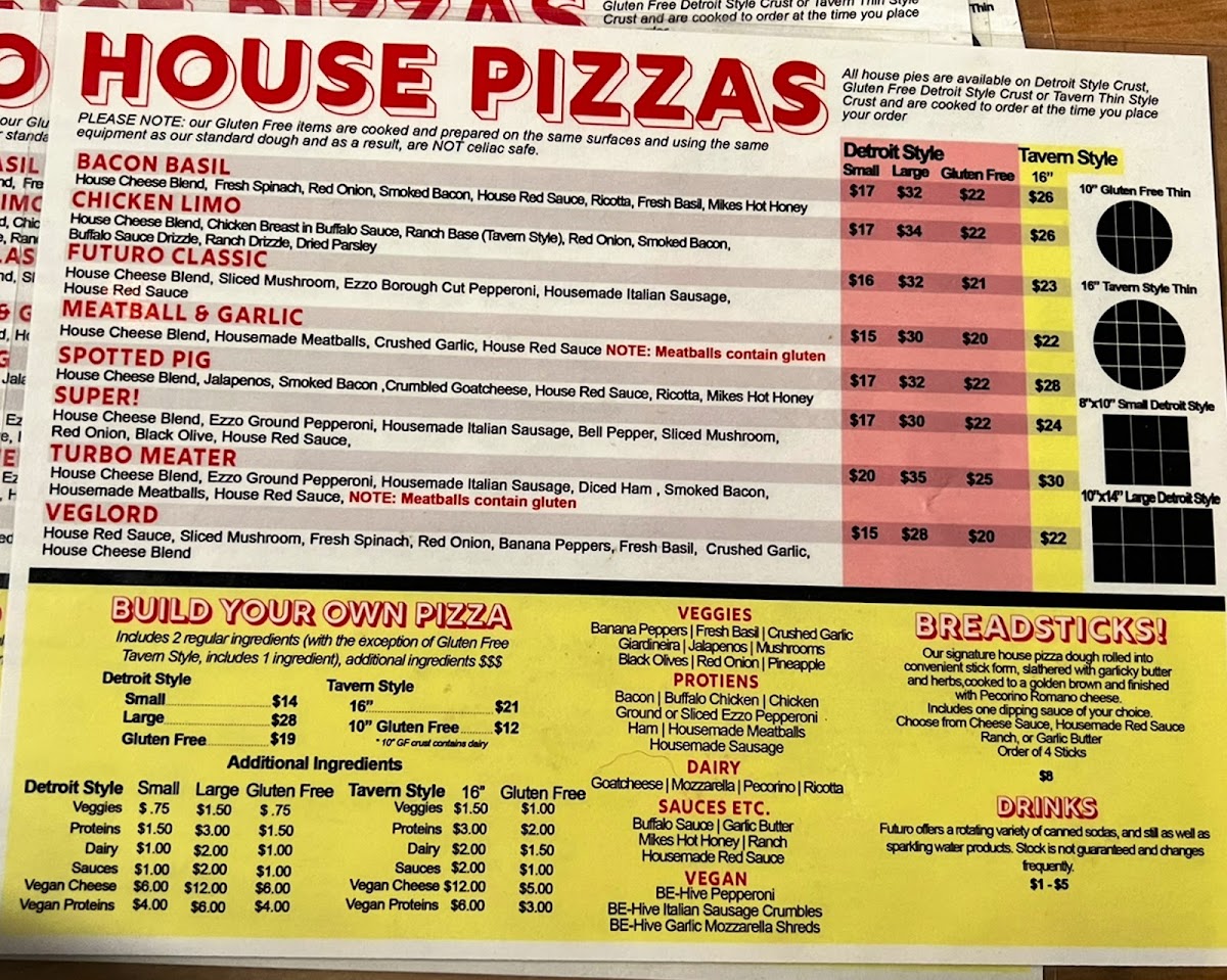 Housemade red sauce and pecorino romano are included. Two ingredients included (non-vegan). Choose from the following. All vegan ingredients $3 upcharge each, $2 upcharge for additional non-vegan ingredients after the included two.